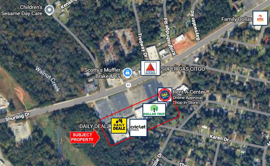 Co-tenants include Daily Dealz, Cricket Wireless, Rent-A-Center, Allstate Insurance and more.