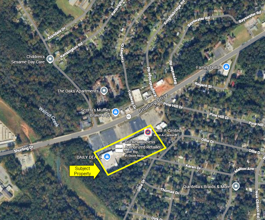 Located within the established Shurling Pointe retail center, this multi-tenant office opportunity at 1765-A Shurling Drive in Macon offers seven individual suites ranging from ±72 SF to ±168 SF, ideal for small businesses or professionals seeking affordable, flexible space in a high-visibility location. Each suite is competitively priced between $495 and $525 per month with a three-year minimum lease term, providing cost-effective occupancy within a well-trafficked commercial corridor. The property benefits from strong daily traffic counts of approximately 23,400 vehicles per day along Shurling Drive, as well as excellent signage opportunities that enhance tenant exposure. Strategically positioned near the intersection of Shurling Drive and New Clinton Road, the center is surrounded by established national and regional co-tenants including Daily Dealz, Cricket Wireless, Rent-A-Center, and Allstate Insurance, driving consistent customer activity to the area. With its convenient access and location within a ±119,413 SF shopping center, this property presents an ideal setting for service-oriented users, startups, or satellite office space.