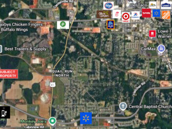 Located in a high visibility area with access to a variety of national retailers and restaurants in Warner Robins including Kroger, Publix, Walmart, The Home Depot, Lowe Toyota of Warner Robins, TJ Max, Lowe’s, Zaxby’s, Starbucks, Dutch Bros Coffee, Olive Garden, Del Taco and more.
