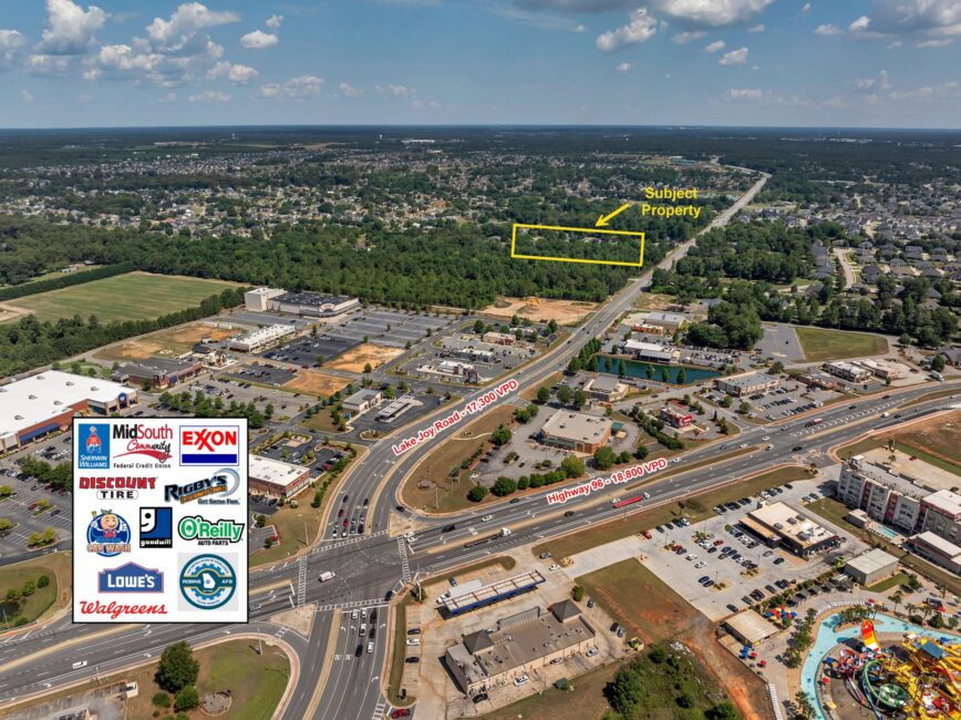 Offered at $32/SF, NNN, the property is zoned C-2 (Commercial) and will have all utilities available, allowing for a seamless development and buildout process. The Enclave at Lake Joy is part of a larger mixed-use community that will include approximately 209 townhomes, loft apartments with ground-level retail, and two retail strip centers—creating a built-in customer base and consistent daily traffic.